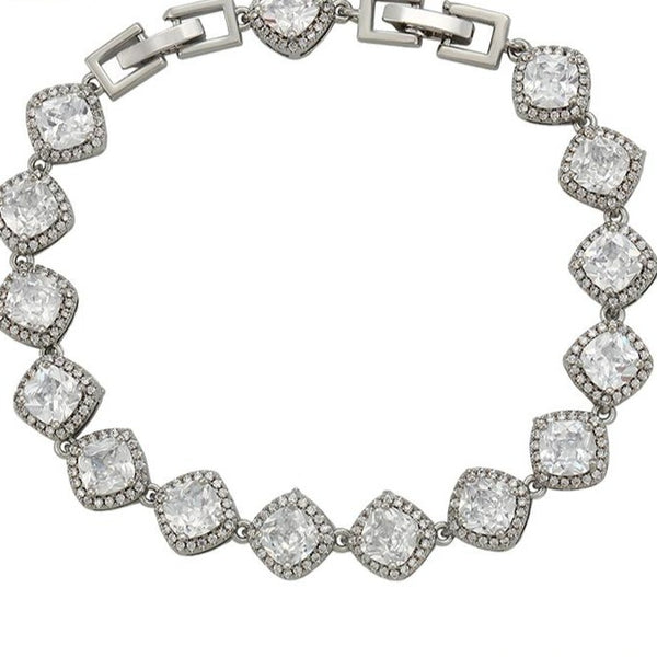 White Gold plated Fine CZ, Princess Cut Sparkling Bracelet.