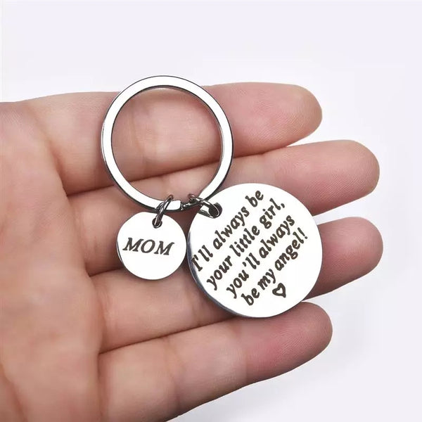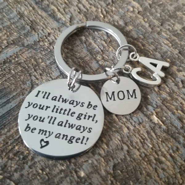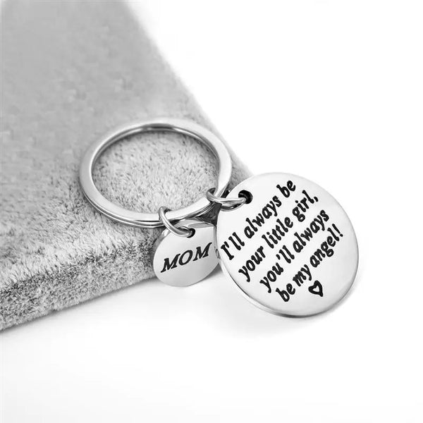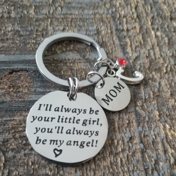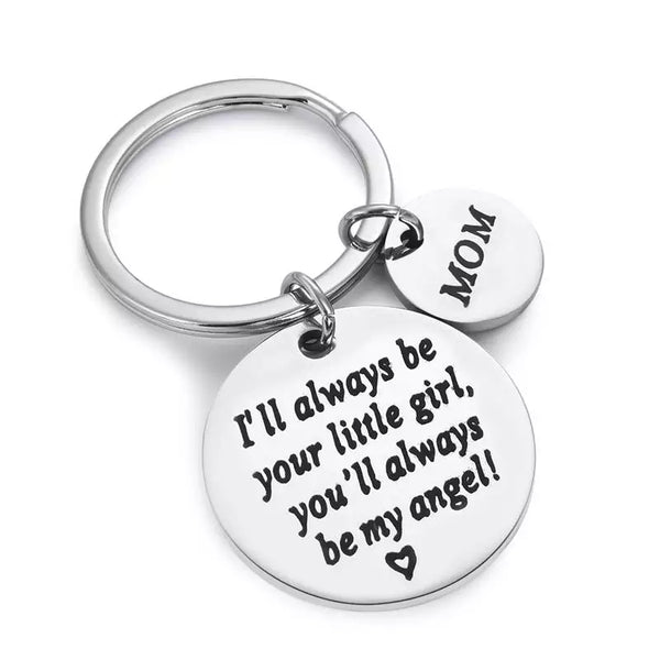 This item has a charm that says I'll always be your little girl, you'll always be my angel.