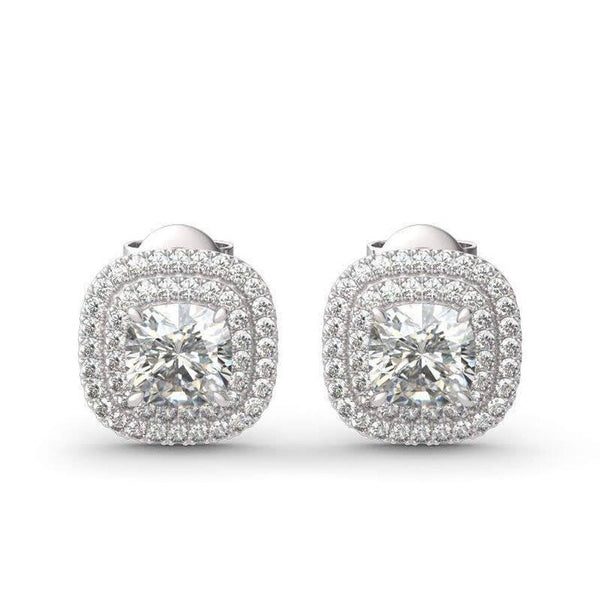 Sparkling Sophistication! A pair perfect for any occasion, this breathtaking beauty features two dazzling round halos that beautifully frame the center stone.