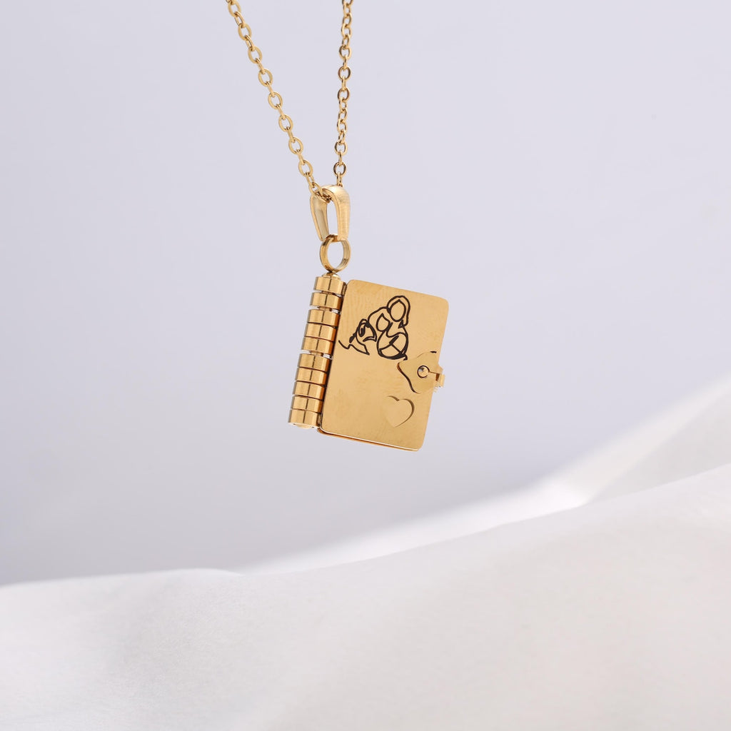 For your own custom message, order here: hnsstudio.ca/products/custom-book-necklace-personalized-mini-book-pendant