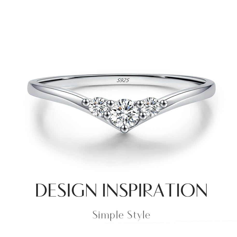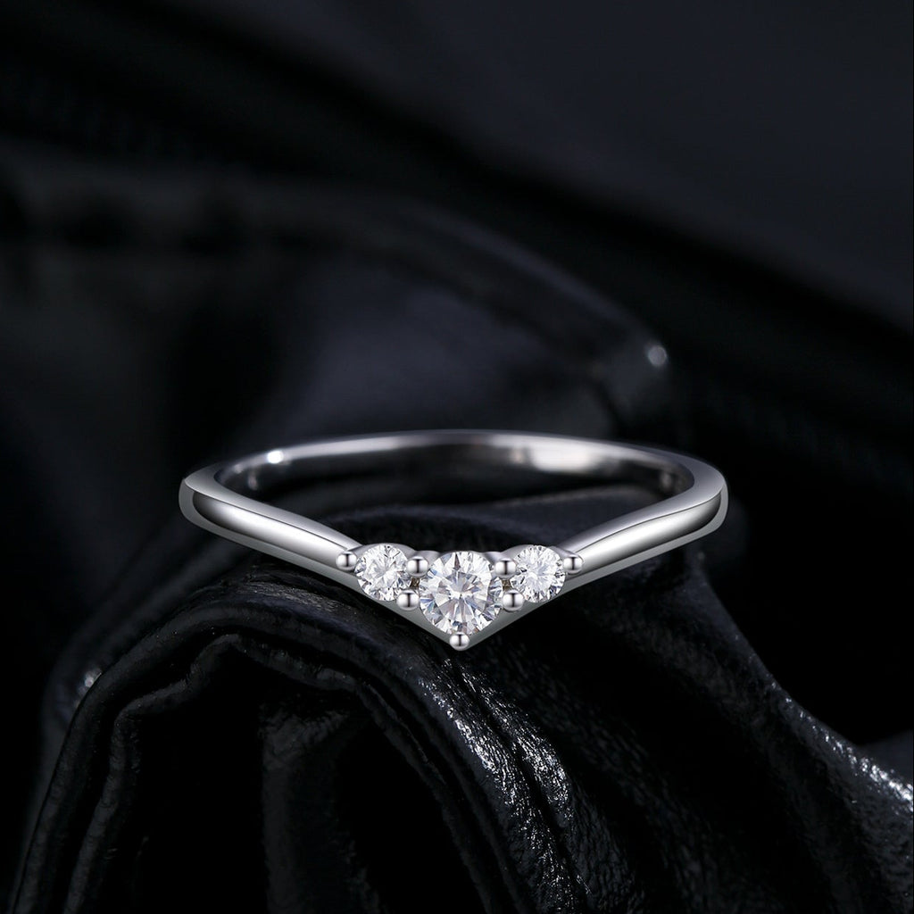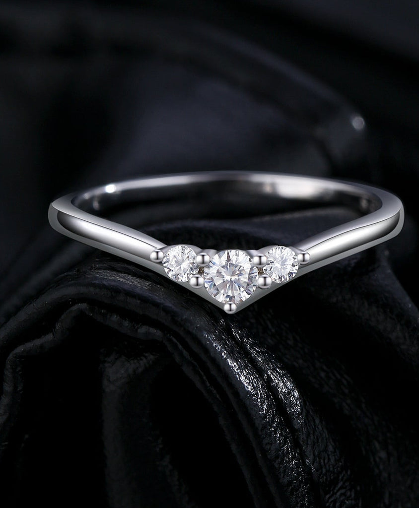 Three Stone Moissanite Thin Band Ring – 925 Sterling Silver Diamond Alternative Engagement Ring | HNS Studio