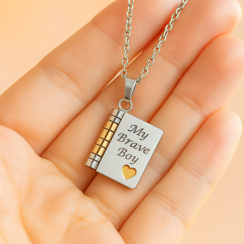 Create a story they can wear forever. Our Custom Book Necklace features a beautifully crafted mini book pendant with pre-written scripts for your daughter, son, granddaughter, or grandson. Each book opens to reveal meaningful messages designed to inspire, comfort, and remind them of your love.